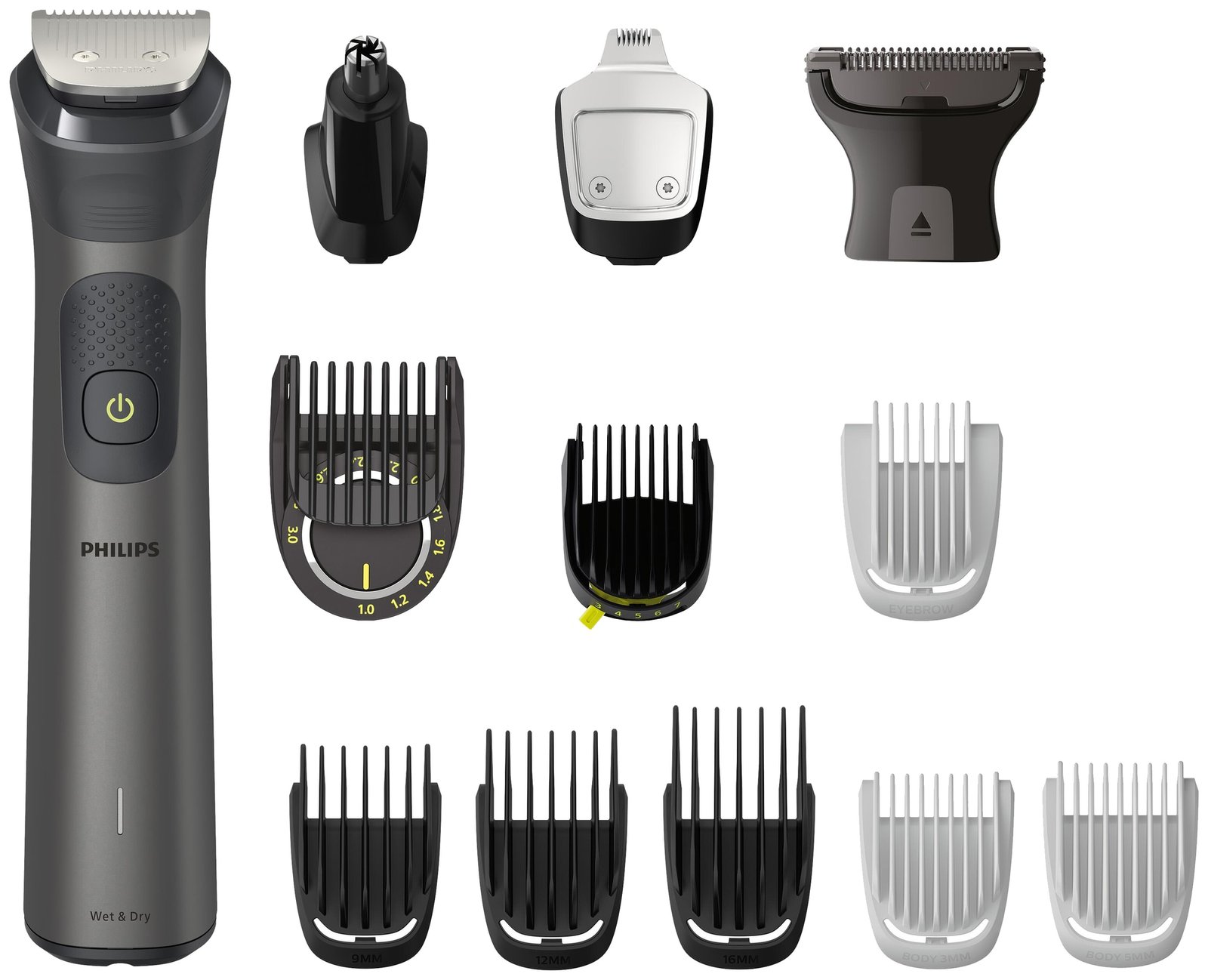 Philips All-in-One 7000 hårtrimmeren MG7920/15 gør det nemt at barbere ansigt, hår og krop med et alsidigt 13-i-1 hårtrimmersæt. Trimmeren er vandtæt, så den er nem at barbere og rengøre.